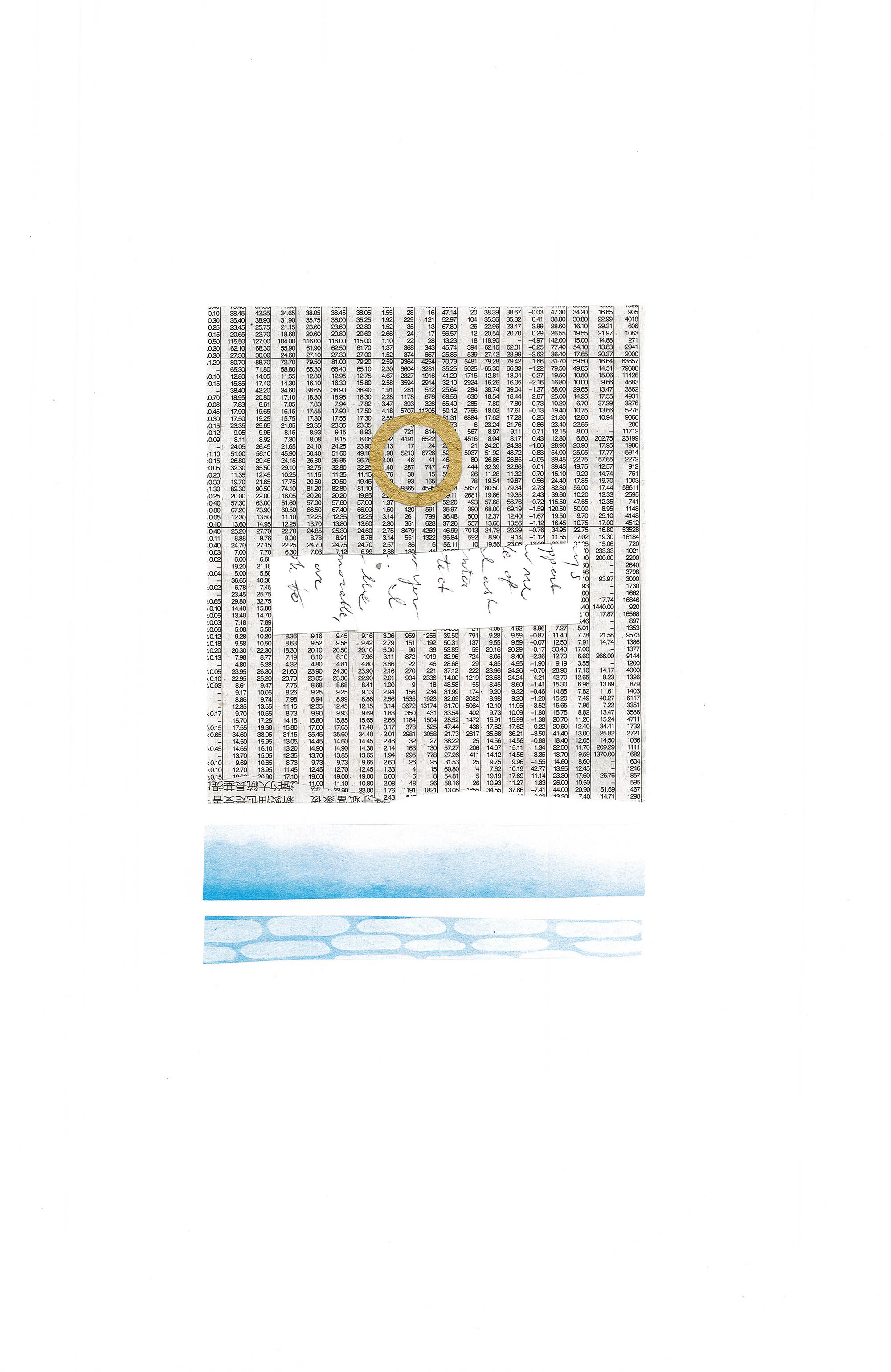 9" x 11",Taiwanese newspaper, gold paper, segment from artist's journal, 2018