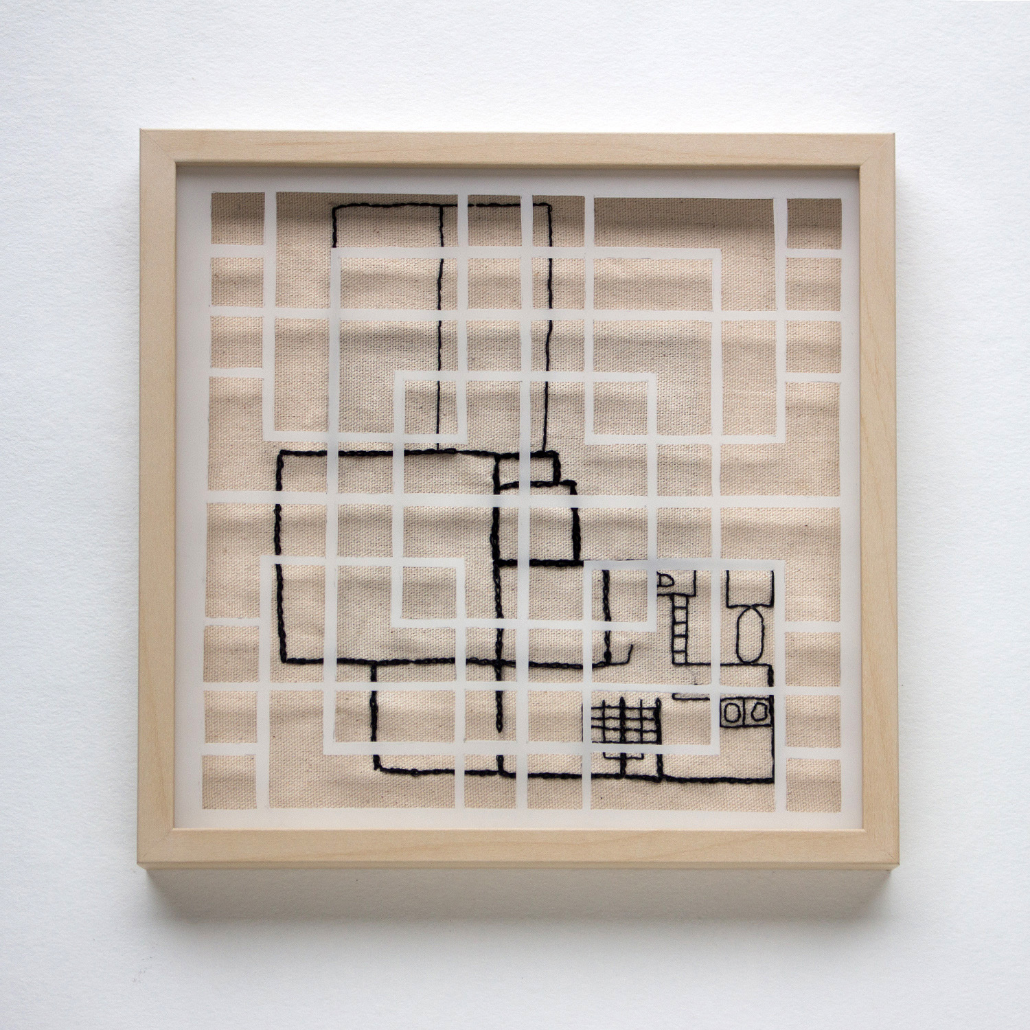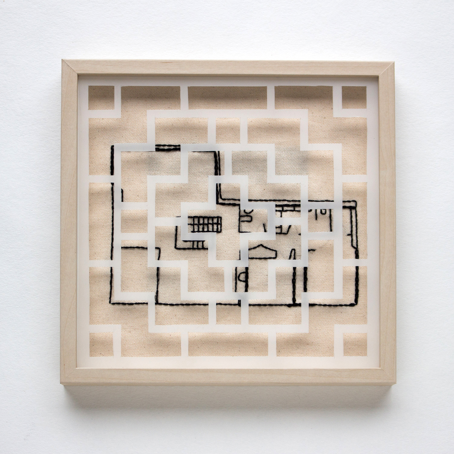 9" x 9", Cotton canvas, embroidery thread, vellum, 2020