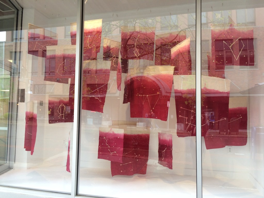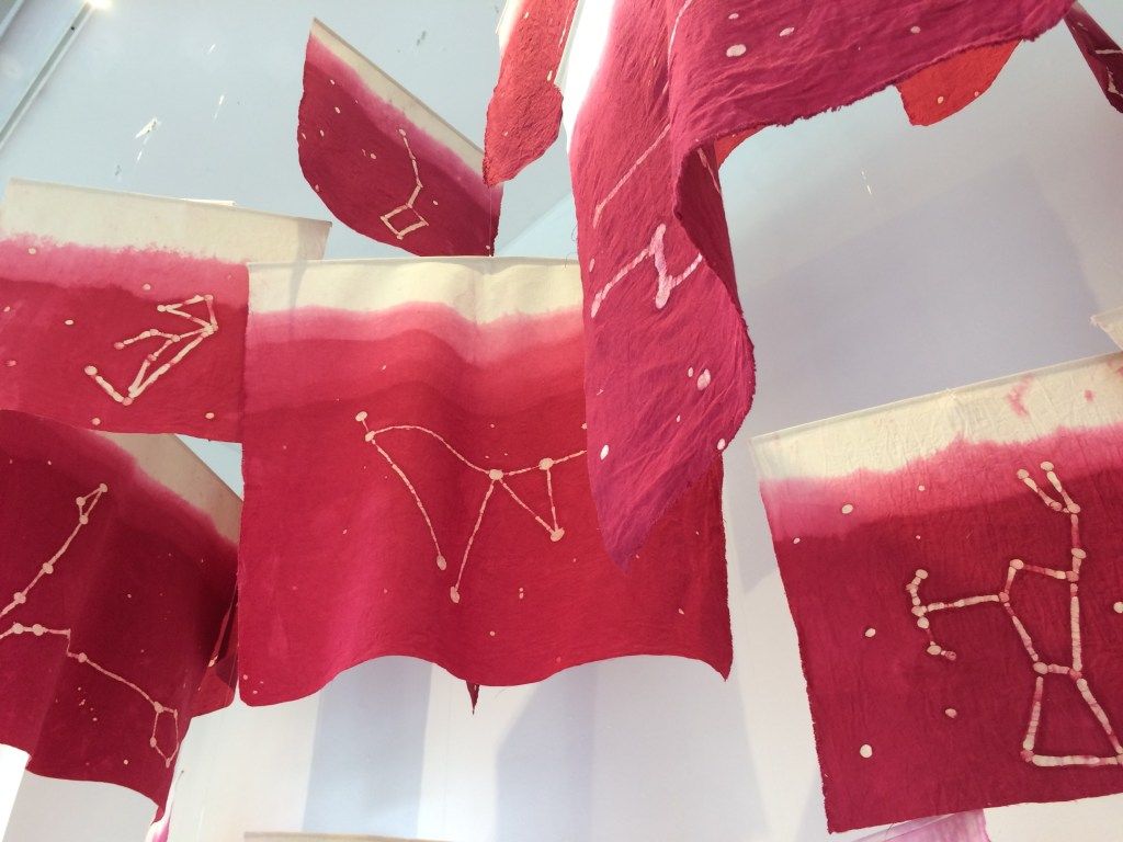 I began exploring the idea of revelation through the process of wax resist dyeing - fabric etched with wax that reveals it’s final image only in the dye process. Using this wax resist technique, I created a multitude of constellation banners that depict the 12 main star signs, and their 36 deacons, or corresponding constellations. Each constellation carries with it a story, both of mythologies of old, and a larger narrative that transcends time and space.